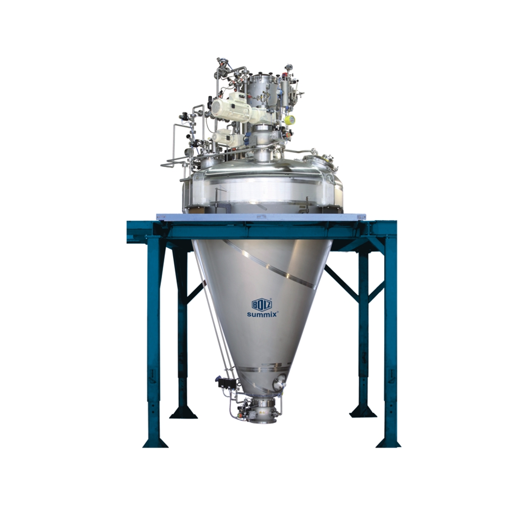 Mezcladores horizontales, bicónicos y en V, secadores de lecho fluido, granuladores en seco y húmedo, amasadoras, equipos pilotos para laboratorios, etc.